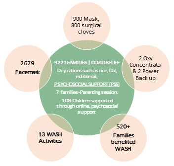 Covid 19 has upended the lives of many vulnerable children and their families. This painful situation arouses our commitment for helping the victims. READS took rapid relief action to moderate the impact of the pandemic. the project is to basically intervene and moderate the impact of COVID-19 pandemic on the livelihood and wellbeing of the community within the projected area mainly focussing on these three major aspects, they are – 1) Livelihood support through food supplement, 2) Awareness and safety of the community from coronavirus and 3) Psychosocial support of children and the community.